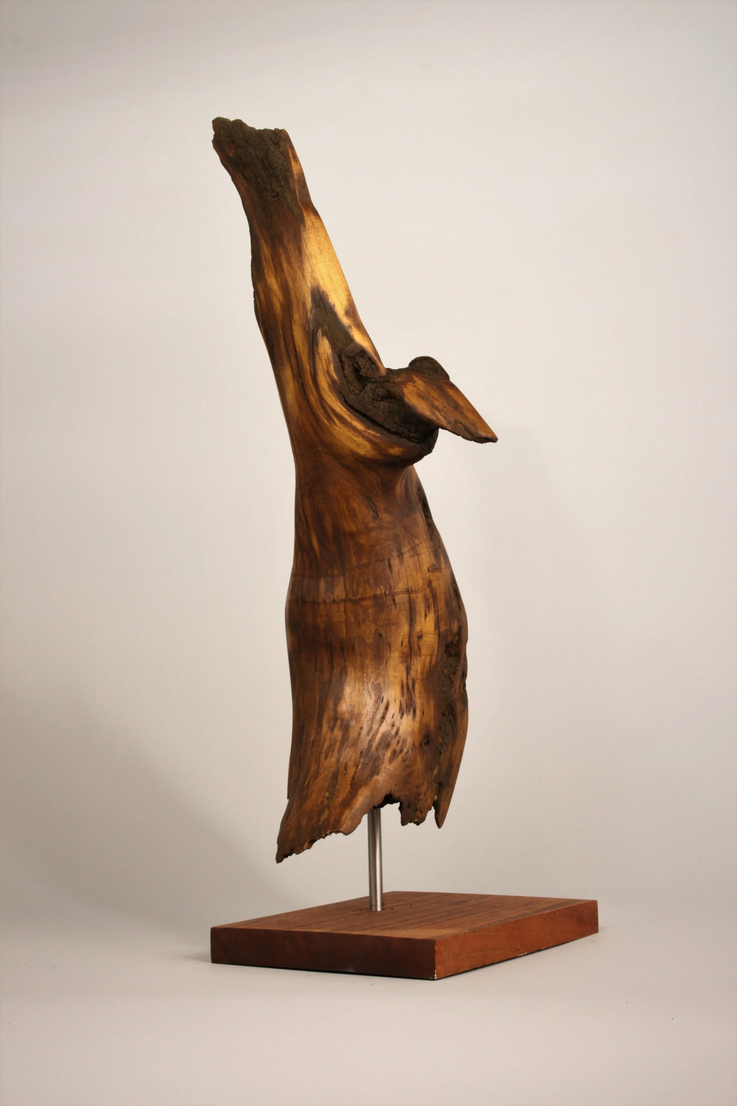 Adrift 1 was found in a log dam that formed in a heavy rainstorm. There is a massive pecan tree blocking logs from flowing downstream. Over time, more and more logs piled up. The pecan tree is wide enough to easily walk on, and the trapped logs create a stable surface. I always climb around on this dam every time I walk along the creek because new logs appear after every rain. I can spend anywhere from an hour to half a day sorting through all the driftwood. Not every log is intriguing enough for me to take, however. I usually throw away 20 to 30 pieces before I find one I want to keep. There is something almost meditative about this process. I enjoy listening to the birds and creek flowing through the dam. I can spend hours there and not even realize that time has gone by.