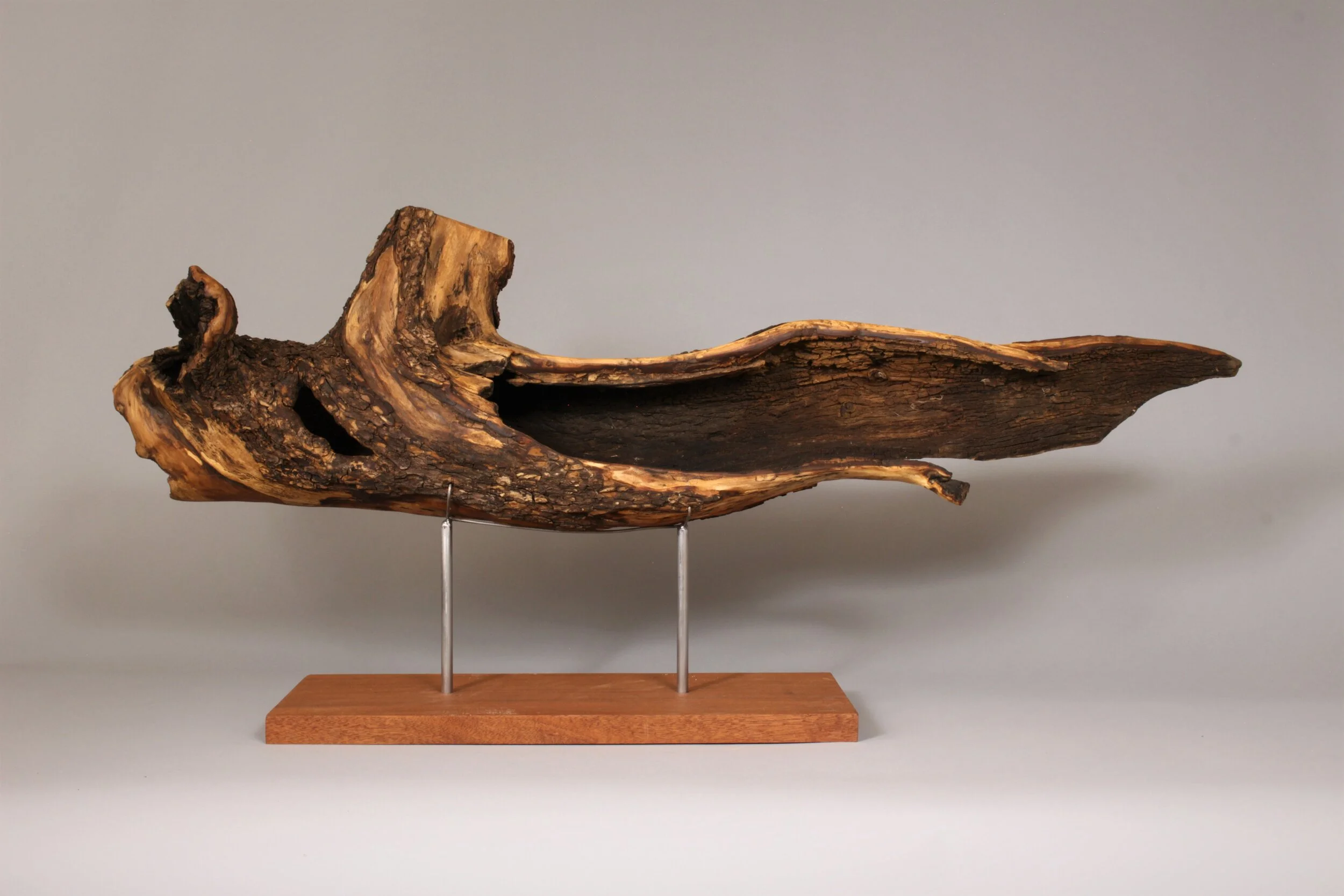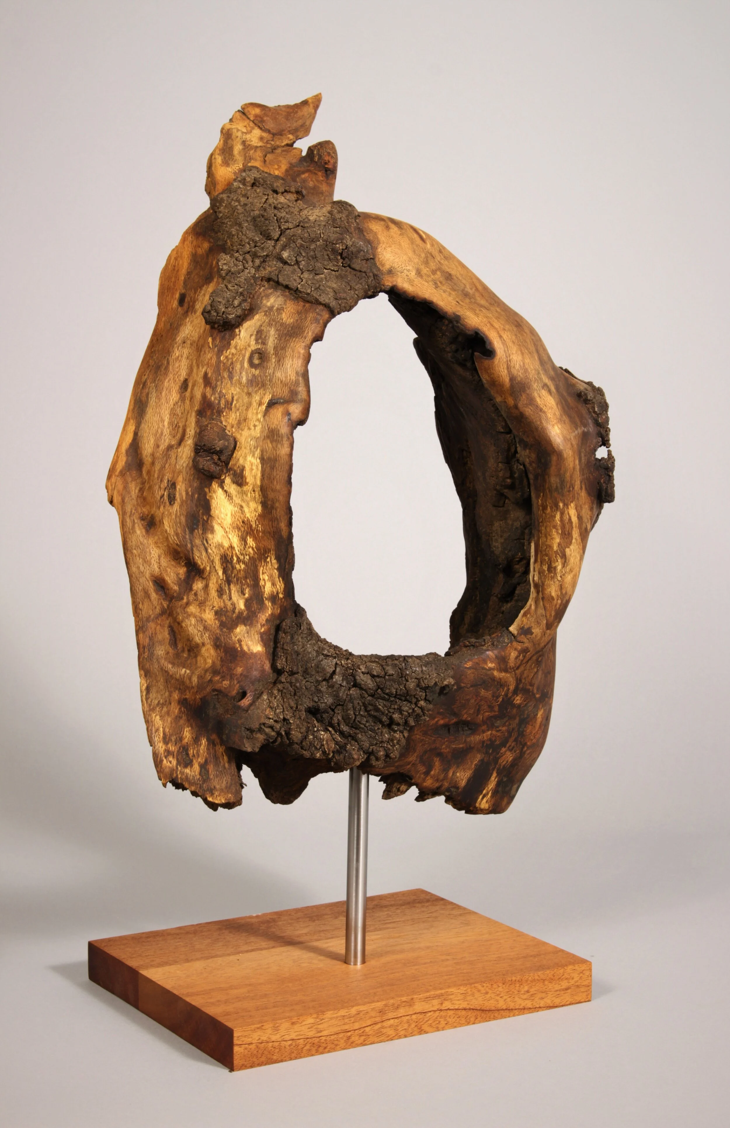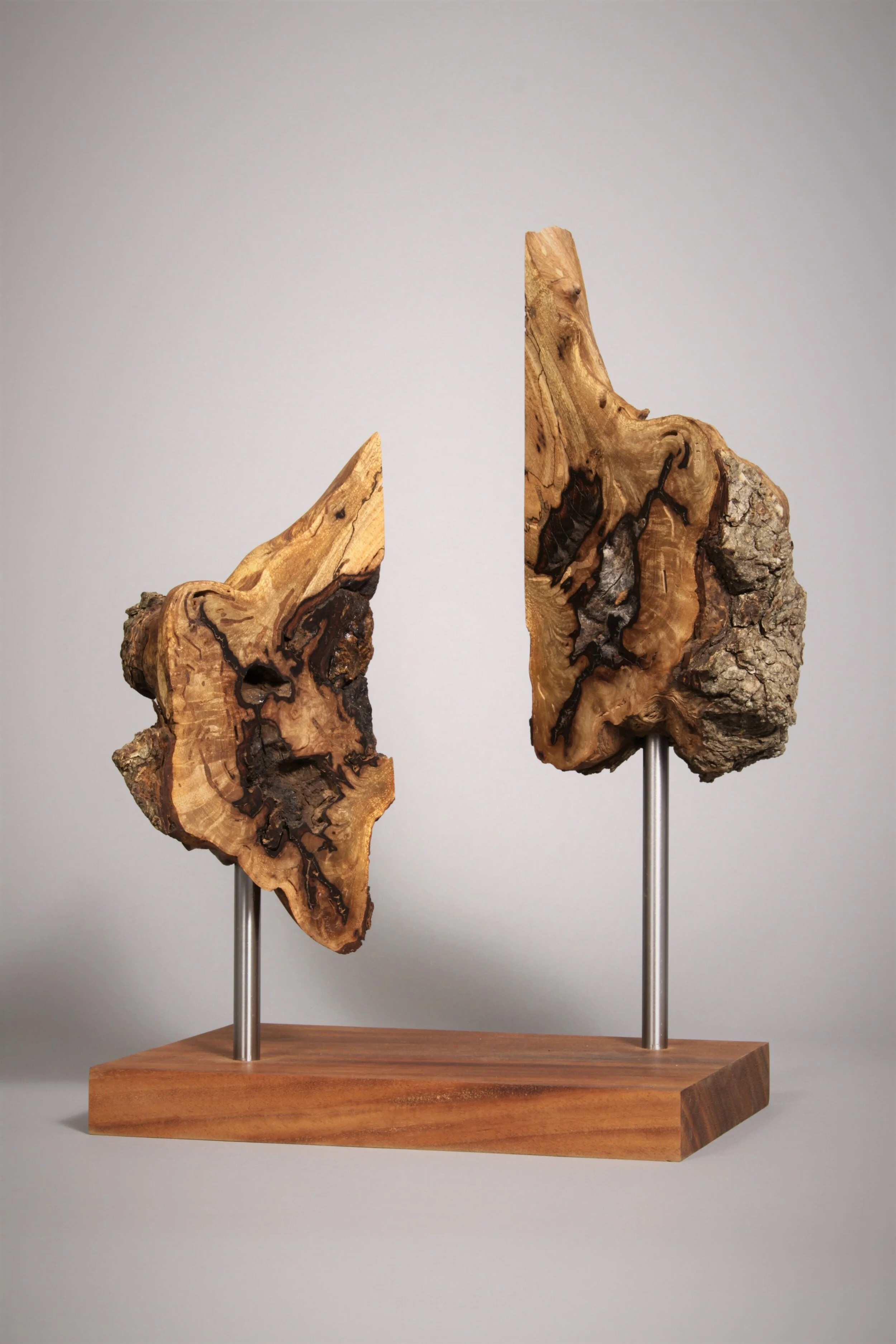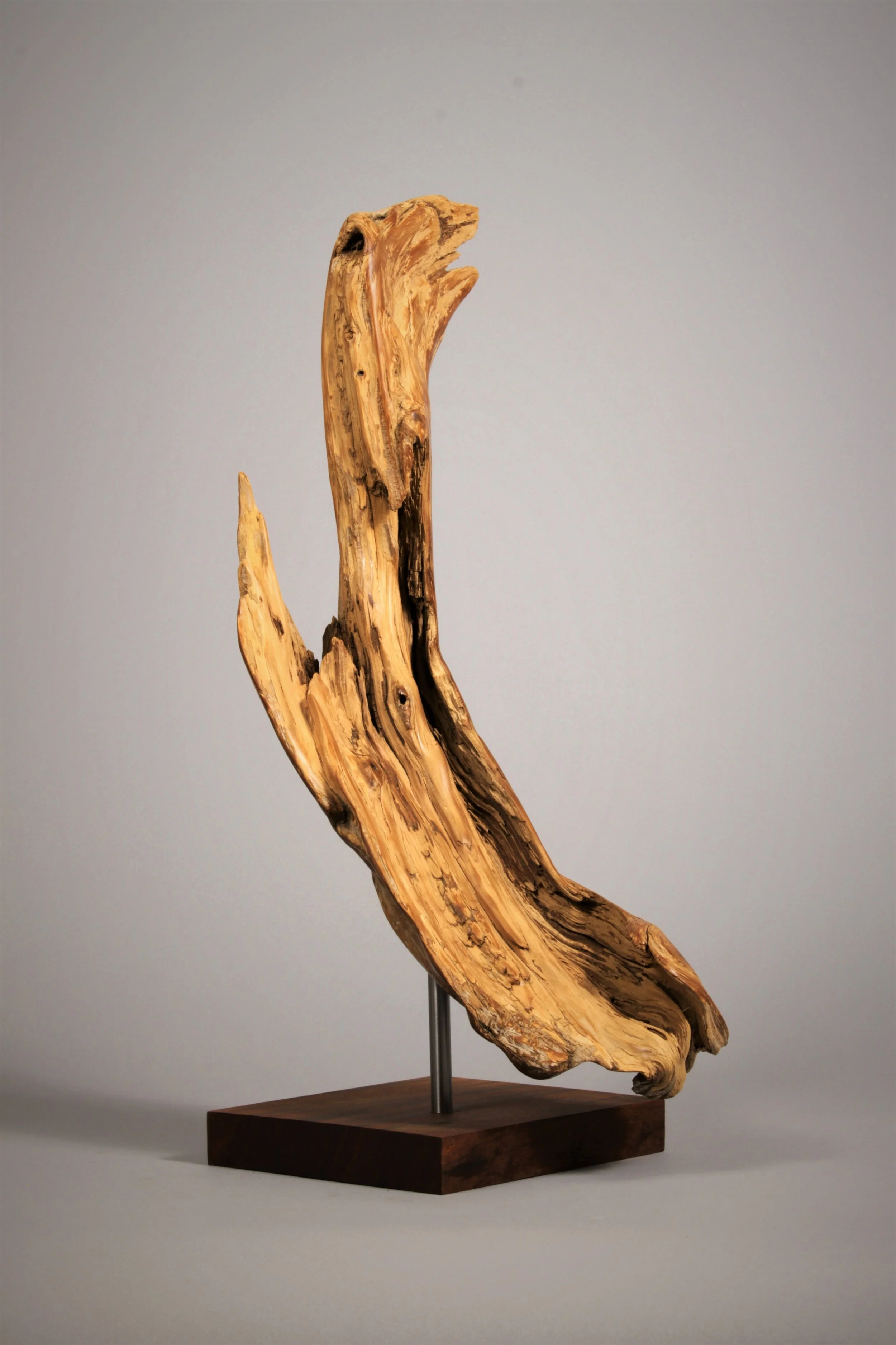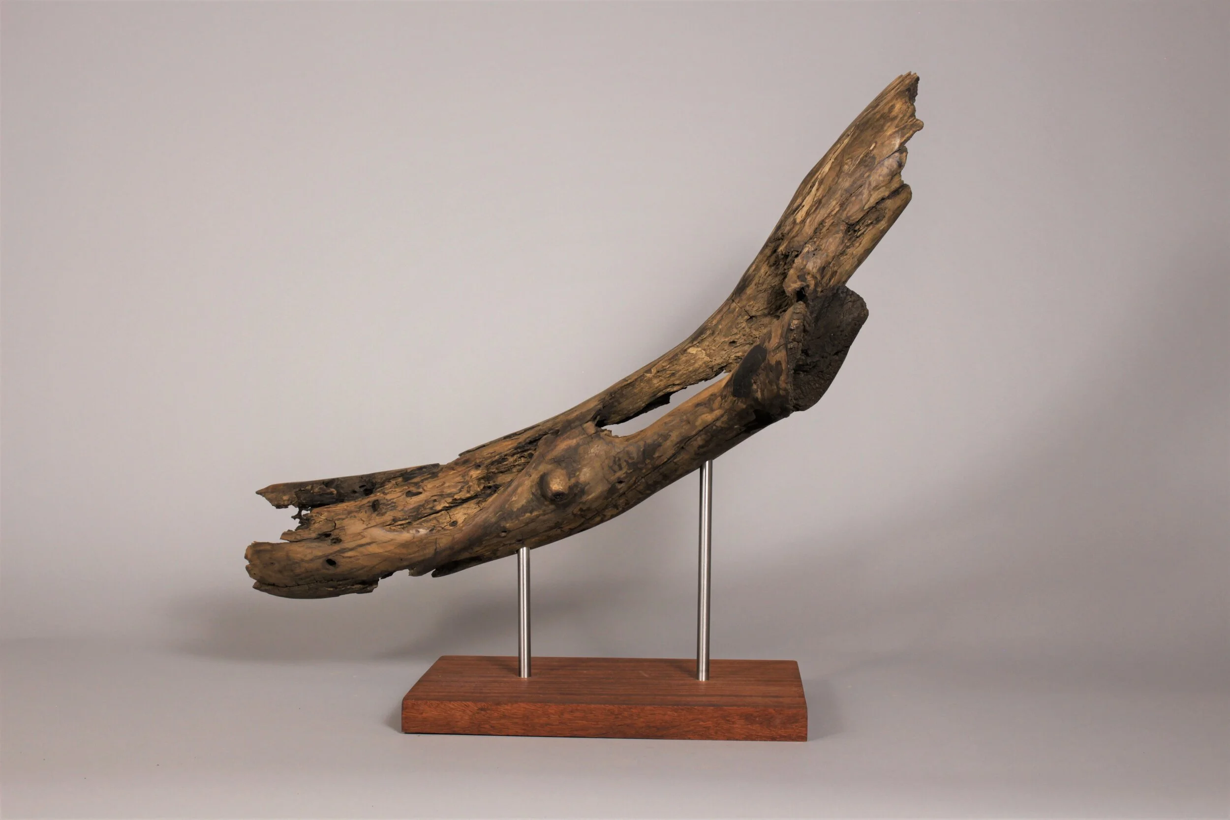 There is an order and beauty in nature, especially in decaying wood. The twisting and gnarled patterns found in the grain and rot are continuously overlooked. My process is one of unearthing, refining, and displaying found wooden pieces in various stages of decay. I keep my touch light to enhance, not to impose on, this natural order. It is essential to me that the viewer experiences the piece itself and not dwell on my alterations. I do not want my audience to be distracted by narratives in the work; instead, I want them to be absorbed in a purely aesthetic experience.